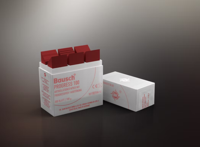 Giấy cắn Bausch 100µ với khả năng chuyển màu theo áp lực là công cụ lý tưởng để phát hiện rõ ràng bất kỳ nhiễu cản nào trong lực nhai. Sau khi đã điều chỉnh và định vị vùng có vấn đề, nên sử dụng các