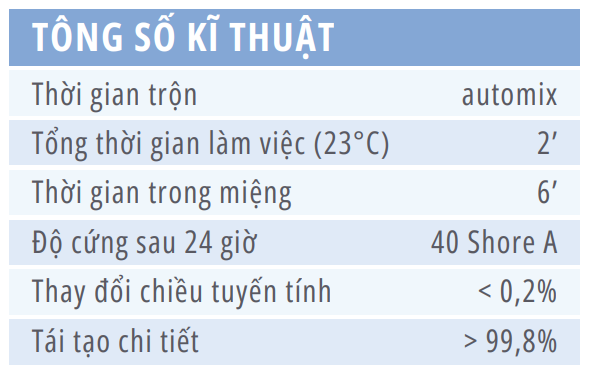 • Đặc tính đàn hồi cao và tái tạo chi tiết