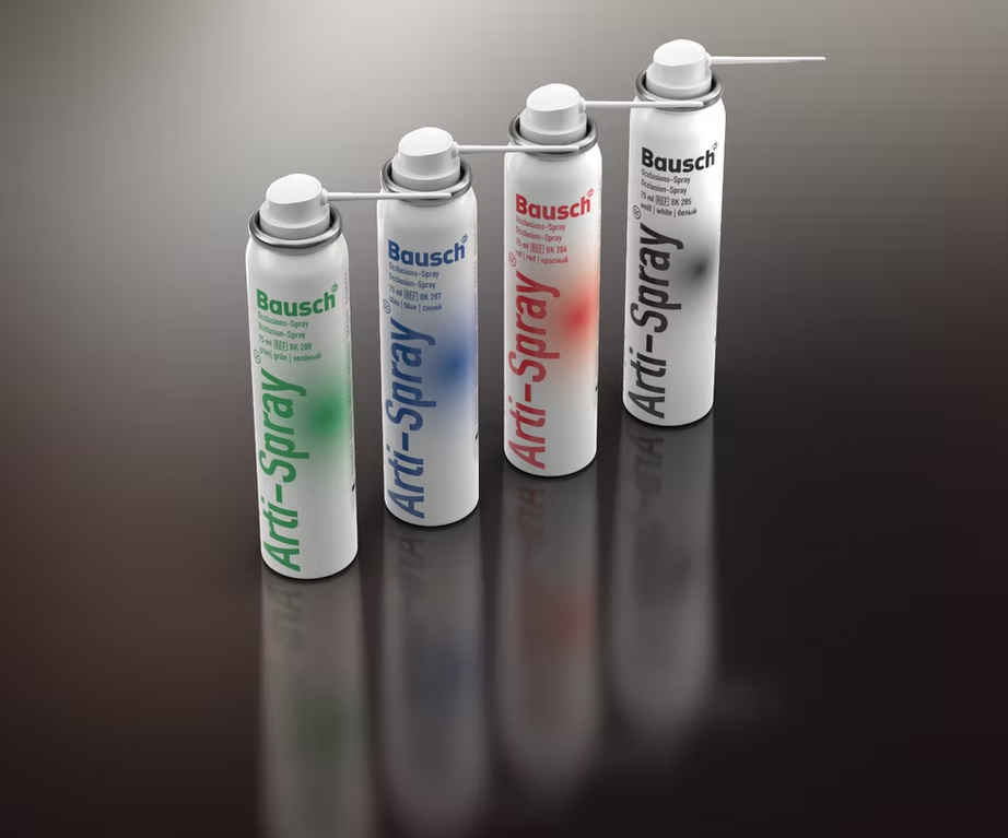 Arti-Spray® is a universal marking spray in four different colors for the dental laboratory for checking occlusal contacts as well as the accurate fitting of crowns, bridges, dentures and bite splints.