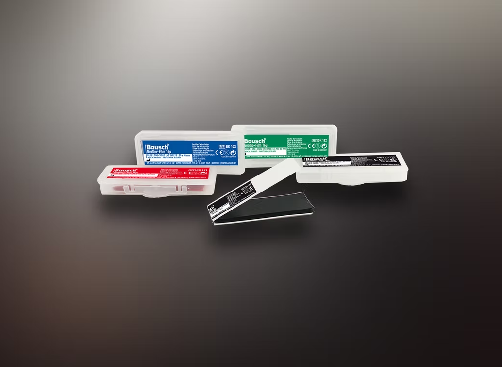 This unique film adapts perfectly to the individual conditions of the respective occlusal surface. The flexibility of polyethylene as well as the soft color-coating enable precise checking of the actual contact points.